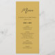 Diese moderne, minimalistische Hochzeit im Herbst Empfang Karte bietet eine einfache, saubere Anordnung auf einem goldenen Hintergrund. Das Design bietet Platz für Sie, um Ihre Hochzeitsempfang-Menüpunkte, die Namen der Braut und Bräutigam und deren Hochzeitsdatum hinzuzufügen.