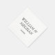 Einfache, elegante, moderne, schwarz-weiße Servietten für Hochzeiten. Minimalistische Drehbücher Hochzeitsnapkins. Personalisieren Sie es mit Ihrem Nachnamen und Datum.