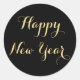 Einfache, elegante, benutzerdefinierte, schwarze, schöne Imitate Gold-Script / Typografie / Kalligrafie "Happy New Year", klassische Rundaufkleber Blatt. Ein schöner Aufkleber perfekt für Ihre neuen Jahre Mailings in dieser Feriensaison.