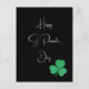 Front: Modernes, schwarz-grün-irisches Kleeblatt-Kleeblatt-Design, das mit Ihrer eigenen Botschaft individuell gestaltet werden kann. Niedliche irische St Patrick's Day Postkarte für Feiertage Grüße. Diese leere Karte eignet sich hervorragend für Einladungen, traditionelle irische Party, Familienveranstaltungen im Frühling, Verkaufsveranstaltungen und VIP-Veranstaltungen für Ihr Familienrestaurant, Ihre Kneipe oder Ihr Business. Zurück: Leere