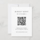 Diese minimalistische und elegante QR Code Hochzeitskarte bietet modernen schwarzen Text auf einem sauberen, weißen Hintergrund für ein einfaches und stilvolles Aussehen. Ihre Gäste können den Code einfach scannen, um Ihre Hochzeitswebsite und uAwg online zu besuchen.