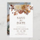 Einfach Fall Foto Save the Date. Diese elegante rett-the-date-Karte bietet handbemalte Aquarellfarben in Orange und Terrakotta-Blätter sowie cremefarbene und beige Dahlien, die als hübsches Bouquet mit einem Foto aus Verlobung auf der Rückseite angeordnet sind. Finden Sie passende Artikel in den Herbst Romance Kollektionen.