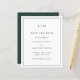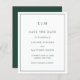 Einfaches Budget Save the Date mit modernem und dennoch elegantem Design mit Ihrem zweistelligen Monogramm oben und Ihren Hochzeitsdetails, umgeben von einer dünnen Grenze. Alle Designelemente sind grün und können im Designbearbeitungstool geändert werden. Ein elegantes und stilvolles Design, das sich ideal für ein minimalistisches Paar eignet.