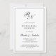 Einladende Probe-Dinner-Einladung mit einem schlichten Design mit Ihren beiden ersten Monogrammen und Ihren Namen in einer eleganten Kalligraphie innerhalb eines dünnen Randes. Die Rückseite ist schwarz. Dieses klassische Schwarz-Weiß-Design eignet sich perfekt für ein Probe-Dinner.