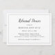 Modernes Probe Dinner Einladung in minimalistisch Schwarz-Weiß mit Ihren Veranstaltungsdetails umgeben von einer Grenze. Die Rückseite hat Ihr Monogramm in einem eleganten Skript. Der Schriftart und die Grenze können in eine beliebige Farbe geändert werden, indem Sie auf die Schaltfläche "Anpassen" klicken. Ein einfaches und minimales Design, das für jeden Hochzeitsstil gut funktioniert.