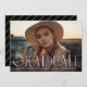 Mit unseren modernen Abschlussankündigungen zum Foto kündigen Sie Ihren Abschluss stilvoll an. Die einfachen Graduierungsankündigungen stellen Ihr bevorzugtes, horizontal ausgerichtetes Senior Foto mit "Graduate" in einem modernen, weißen Textüberlagerungsformat dar. Personalisieren Sie die Front der trendigen Graduierungsankündigungen, indem Sie den Namen des Absolventen, den Namen der Schule und das Abschluss Jahr hinzufügen. Die Karte zeigt ein schwarz-weiß gestreiftes Design an.
