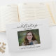 Einfache Foto Beerdigung Gästebuch. Elegantes Design mit modernem Foto-Inhaber verbindet klassische und stilvolle Elemente zu einer gelungenen Lebensfeier, einem Gedenkgottesdienst oder einem Begräbnisgastronomie. Ihre Gäste wollte, ihren Respekt zu bezahlen, und dieses minimalistische und einfache Gästebuch wird ihnen einen Augenblick erlauben, Ihnen ihren Respekt und ihr Beileid auszudrücken. Finden Sie weitere Denkmal- und Erinnerungsartikel wie dieses im Shop Modern Script Celebration of Life Collection in The Ansammlung Designs.