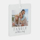 Dieses schlichte und elegante boho-inspirierte Weihnachtsgeschmack ist eine schöne Möglichkeit, um die Familie während der Ferien zu feiern. Das Design bietet Platz für ein Foto auf der Vorderseite und ein Foto auf der Rückseite, was es zu einem doppelseitigen Sake macht, Ihre bevorzugten Erinnerungen zu präsentieren. "Family" wird unter dem vorderen Foto in einem klassischen Serif-Schriftart angezeigt, mit Platz in Soft Script, um Ihren Familiennamen, Vornamen oder eine kurze Nachricht hinzuzufügen. Auf der Rückseite wird das Jahr unten für eine personalisierte Touch hinzugefügt, die den Augenblick in der Zeit markiert. Der weiße Hintergrund und der weiche, graue Text verleihen ihm ein sauberes, zeitloses Aussehen, das mit jedem Baum-Dekor funktioniert. Alle Schriftart, Farben und Fotos können vollständig an Ihren Stil angepasst werden. Ein durchdachtes und persönliches Urlaubspensum für jede Familie.