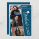 Die Simple Modern Foto Strips Blue Abschluss Announcement Card ist ein modernes, elegantes Mix-Design. Mit einem blauen Farbschema bietet es Foto-Collage-Filmstreifen, einen Abschluss-Hut und eine stilvolle Kalligraphie. Die Karte erfasst das Wesen des Abschlusses, symbolisiert den Erfolg und die Feier. Die Filmstreifen rufen Nostalgie hervor und zeigen den Kern der Freude des Absolventen. Der Abschluss, der Tradition hinzufügt, während die Kalligraphie eine persönliche Touch hinzufügt. Diese visuell auffällige Karte spricht die Absolventen und ihre Familien an und dient als hochgeschätzter Sake. Modernes Design und thematische Elemente machen es zu einem passenden Tribut an die Leistungen des Absolventen.