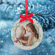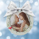 Einfaches Foto Winter Roter Kardinal Grüner Kranz Keramik Ornament