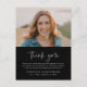 Ein Simple Funeral Memorial Foto danke Ihnen Karte mit handgeschriebenen Skripten danke und minimale Typografie. Klicken Sie auf die Schaltfläche Bearbeiten, um diese Dankeschön-Vorlage mit Ihren eigenen Details und Foto Ihres Liebsten leicht anpassen.