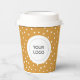 Dieser minimale Papierbecher zeichnet sich durch ein einfaches Logo und ein einfaches Pinselkonfetti-Muster auf einem gelben Hintergrund aus. Fügen Sie Ihr Logo hinzu und passen Sie den Text mit Ihren Informationen an. Sie können diesen personalisierten Becher an Ihrem Geschäftsplatz, in Geschäften, bei Firmenveranstaltungen, usw. nutzen.