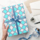 Abstraktes geometrisches Muster mit blauen und weißen Formen. Einfaches und elegantes Packpapier zum Verpacken Ihres besonderen Geschenkes