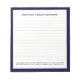 Erleben Sie mit unserem Simple Lined Business Notepad Ihr Erlebnis. Dieses Notizblock ist mit einem weißen Hintergrund mit Ihrem Firmennamen und Kontaktinformationen in klassischer Typografie, stilvoll in der Marine gerahmt. Egal, ob Sie wichtige Informationen sammeln oder kreative Ideen einfangen, dieses Notizblock fügt Ihren Noten eine Touch von Professionalität hinzu. Behalt mit diesem stilvollen Business Notizblock die Identität deiner Marke an vorderster Front.