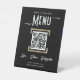 Einfaches Textformat mit Business-Gästekarte. Qr-Code für Speis- oder Service-Menü mit Website oder Social Media-Verbindung. Wie Aktien abonnieren