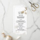 Dieses wunderschöne Hochzeitsdesign besticht durch seine schlichte, in Weiß und Gold gehaltene blumenreiche Hochzeitsmenüs, die sich perfekt für jede stilvolle und anspruchsvolle Zeremonie eignen. Dieses exquisite Gold Glitzer Blume Design ist ideal für das moderne und stilvolle Paar. Passen Sie dieses Design mit Ihrer Nachricht und personalisierten Informationen an. Alle Designs sind gedruckt.