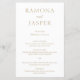 Elegante Imitate goldenes Hochzeitsmenü mit einem einfachen und minimalen Design. Klassisches Layout mit großen Namen für eine moderne Drehung zu diesem traditionellen Stil. Ein Hochzeitsmenü, das sich perfekt für eine feierliche Hochzeit eignet.