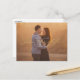 Dieses elegant minimalistische Foto Save the Date verfügt über ein lässiges Drehbuch und ein großes Foto. Auf der Vorderseite der Postkarte steht "Save the Date" in einfacher Goldkalligraphie. Der Name des Paares ist in Weiß über dem Skript geschrieben, und das Hochzeitdatum und der Ort werden unter dem Skript geschrieben. Das Typografie-Design überlagert ein vollblutförmiges horizontales Foto (Querrichtung). Zusätzliche Hochzeitsdetails (einschließlich der Hochzeitswebsite) können auf der Rückseite der Postkarte hinzugefügt werden.