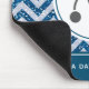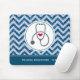 Personalisiertes Mousepad mit rundem Rahmen und innen ist ein graues Stethoskop und ein rotes Herz. Set auf einem blauen Zickzack Muster mit Imitat Glitzer. Kein echter Glitzer, es ist nur ein Bild von Glitzer.