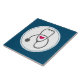 Keramik mit einer Abbildung einer grauen Stethoskop-Silhouette mit einem niedlichen roten Herz. Blauer Hintergrund.