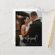 Wir haben uns entwickelt! Mit dieser einfachen und modernen Foto-Postkarte kündigen Sie Ihre Hochzeit an. Es verfügt über ein weißes, handgeschriebenes Skriptüberlagern. Personalisieren Sie diese durch Hinzufügen von Namen, Datum, Ort, Foto und Adresse.