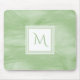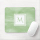 Ein einfaches subtiles Marmorentwurf mousepad in hellgrünem mit einem modernen Abzeichen des weißen Quadrats, dem Sie personifizieren können, indem Sie Ihre mit Monogramm Initiale zu hinzufügen. Dieses ist ein Teil der Nil-Grün-subtilen Marmormonogramm-Sammlung.
