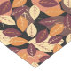 Eine einfache Abbildung von Blätter in Kakaobraun, orange und blassgelb vor schwarzem Hintergrund.