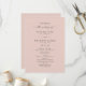 Einfaches Solid Light Pink Hochzeitsprogramm. Diese moderne Minimal Order of Services Card ist schlicht klassisch und elegant mit schlichter Hintergrundfarbe und einem hübschen Schriftart mit Schwänzen in der Schriftzeichen-Kalligraphie. Im neuen Farbraum gezeigt. Erhältlich in mehreren Farboptionen, oder fühlen Sie sich frei, die Farben aus dem Editor zu bearbeiten (klicken Sie weiter anpassen während der Personalisierung). Um mehr zu sehen, suchen Sie nach Chic Paperie's Hochzeitskollektionen 2022, um alle über Trend Designs und Hochzeitsfarben für dieses Jahr zu sehen.