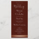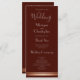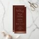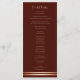 Ein elegantes, modernes Hochzeitsprogramm in Bordeaux mit zwei Rose goldenen Streifen am Ende der Karte. Feiern und Hochzeitsdanken sind auf der Vorderseite des Programms enthalten, während das gesamte Brautparty auf der Rückseite enthalten ist.