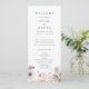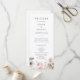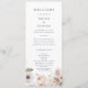 Dieses einfache, blumengeschmückte Hochzeitsprogramm ist perfekt für eine rustikale Hochzeit. Das skurrile Boho Design besticht durch rustikales Rosa, Bordeaux und Marsala-Blume mit einem stimmungsvollen und romantischen Ton. Geben Sie den Namen der Braut und des Bräutigams, das Datum und den Ort der Hochzeit, Dankeschön-Nachricht, Dienstordnung, Brautparty und ein optionales "in Loving Memorial" ein.
