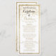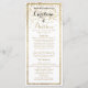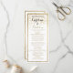 Elegantes, schlichtes, weißes und goldenes Imitat-Konfetti-Hochzeitsprogramm. Ein elegantes, elegantes Imitat mit schlichtem weißem Hintergrund.