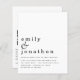 Einfache Text QR Code Schwarz-weiße Hochzeit. Ein Preis SMALLER 4,5" x 5,6" Alternative. Erhältlich in einem SEMI-GLOSS 110 lb CARD STOCK, der die Standardoption (dicker für Einladungen) ist, ODER einem SATIN FINISH 80 lb THINNER PAPER STOCK (ideal für Gehäuse). Fügen Sie Ihren QR-Code zu Ihrer Hochzeitswebsite auf der Rückseite macht dies zu einer bequemen Option für Ihre Gäste, um alle Details zu sehen, ohne dass separate UAWG- und Detailkarten erforderlich sind. Einfach und. Informell sind Ihre Vornamen groß in stilvollen Kleinbuchstaben mit den Details unten. Personalisieren Sie den Text einfach.