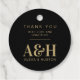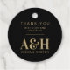 Erhöhen Sie Ihre Gastgeschenke Hochzeiten mit unseren Tags für die Hochzeit Monogram Simple Elegant Minimalistisch Chic Gevor. Diese personalisierten Dankesmarken sind ideal für Hochzeiten in Urlaubsort- und Hochzeitsgeschenke und sorgen für eine personalisierte Touch. Mit den Initialen von Braut und Bräutigam und einer persönlichen Danksagung sind diese Tags sowohl für die Vorderseite als auch für die Rückseite konzipiert, um sicherzustellen, dass jedes Detail berücksichtigt wird. Diese mit Monogramm Vorzugstafeln sind schlicht und elegant und ergänzen jedes Hochzeitsdekor. Personalisiert mit Ihrem Namen und Foto, schaffen sie einen wahrhaft einzigartigen Sake für Ihre Gäste. Das runde Schwarz-Gold-Tag-Design fügt Ihren Favoriten eine Touch von Eleganz hinzu, wodurch sie sich wunderbar hervorheben. Vervollständigen Sie Ihre Gastgeschenke Hochzeiten mit diesen schicken und minimalistischen Gefälligkeitsmarken, die Ihren Gästen einen bleibenden Eindruck vermitteln sollen.