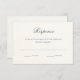 Diese elegante, einfache RSVP-Karte weist einen Hintergrund eines weißen Aquarellpapiers mit klassisch blauem grauem Text auf.