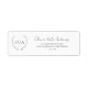 Traditionelles und klassisches Schwarz-Weiß-Rücksendelabel mit einem Wappen mit dem Monogramm innerhalb eines Kranzes und Ihrem Namen in einem Skript / Kalligrafie. Diese schlichten, aber eleganten Rücksendeadressen-Aufkleber eignen sich hervorragend für den Schreibwarenbereich oder für ein Geschäft.