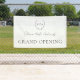 Klassisches Schwarz-Weiß Grand Opening Banner mit einem einfachen Layout mit Ihrem Monogramm in einem Kranz / Wappen zusammen mit Ihrem Namen in einem eleganten Skript / Kalligraphie. Ein feminines und mädchenhaftes Design, das für jedes große oder kleine Unternehmen geeignet ist.