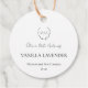 Produkt-Tag mit einem einfachen Layout mit Ihrem Monogramm in einem Kranz / Wappen zusammen mit Ihrem Namen in einem eleganten Skript / Kalligraphie. Im Folgenden finden Sie eine Vorlage für Details zu Ihrem Produkt mit dem Beispiel für eine handgefertigte Kerze. Der Rücken hat Ihre Nachricht in einem klassischen Serif-Schriftart zusammen mit Social Media-Icons. Ein feminines und mädchenhaftes Design, das für jedes Geschäft mit handgefertigten Waren geeignet ist.