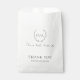Klassische Schwarz-Weiß-Papiertüte mit einem einfachen Layout mit dem Monogramm in einem Kranz / Wappen und Ihrem Namen in einem eleganten Drehbuch / Kalligrafie. Unten ist eine Vorlage für eine benutzerdefinierte Nachricht mit "Danke für Ihren Einkauf" als Beispiel. Ein feminines und mädchenhaftes Design, das für jedes große oder kleine Unternehmen geeignet ist.