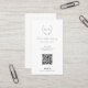 Klassische schwarz-weiße Visitenkarte mit einfacher Anordnung mit dem Monogramm in einem Kranz / Wappen. Im Folgenden finden Sie Ihren Namen in einem eleganten Skript / Kalligrafie zusammen mit Ihrer Kontaktinformation, QR Code, Social Media Icons und Ihrem Social Media Handle. Eine feminine und mädchenhafte Gestaltung für jede Art von Geschäft.