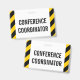 Dieses einfache AbzeichenAusrüstungsbeschreibungen die Mitteilung "KONFERENZ-KOORDINATOR". Sie kennzeichnet auch die schwarzen und gelben farbigen warnenden Streifen. [~Z0000286]