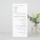 Einfach und elegant mit minimalistischer Anziehungskraft präsentiert dieses Hochzeitsprogramm Ihre Zeremonie und die Namen der Hochzeitsfeier im klassischen Stil. Der weiße Hintergrund mit schwarzem Text hat ein klares Aussehen, das für Ihre Gäste leicht lesbar ist. Eine elegante, dezente Schriftpaarung präsentiert Ihren Text übersichtlich und einfach, um das Thema auszuführen. Personalisieren Sie diese Vorlage auf der Vorder- und Rückseite des Programms mit Ihren Daten. Wenn Sie zusätzliche Bearbeitungen vornehmen möchten, wählen Sie "Bearbeiten mit dem Entwurfswerkzeug", um den gesamten Editor zu öffnen, in dem Sie jede Textebene sehen und detailliertere Bearbeitungen vornehmen können.