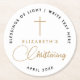 Dieser Untersetzer ist religiös geprägt, mit einem stilvollen, weißen Hintergrund, der sich wunderbar im Kontrast zu Schwarz und Gold befindet. Das Wort "Christening" wird elegant in goldener Kalligraphie dargestellt, während ein minimalistisches, aber klassisches Goldkreuz göttliche Segen symbolisiert. Die benutzerdefinierbaren Textoptionen ermöglichen den Namen und das Datum des Babys in einer sauberen, modernen weißen Typografie. Diese raffinierte Mischung aus zeitlosem klassischem und zeitgenössischem Design ist perfekt für jeden heiligen Anlass. Entdecken Sie die komplette Kollektion für mehr Farbvariationen und koordinierende Designs!
