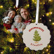 Einfache und minimale personalisierte Sake Weihnachtsschmuck mit Foto auf der Rückseite. Aus einem handgezeichneten Weihnachtsbaum in einem kitschigen Stil erschaffen. Originelle Kunst von Leslie Larson.