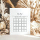 Dieses einfache, minimalistische Baby Bingo Duschspiel ist perfekt für eine moderne Babydusche. Das einfache und elegante Design zeichnet sich durch klassische und extravagante Schriftzeichen in Schwarz und Weiß aus.