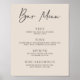 Dieses schlichte Hochzeitsmenü mit minimalistischem Styling ist in Herbstbeige gehalten und bietet eine Textvorlage, die Sie mit Ihrem Getränkekarte personalisieren können. Es gliedert die Getränkekategorien in Bier, Wein, Spirituosen und alkoholfreie Getränke. Sie können mit Ihrer speziellen Angebotsliste personalisieren. Wenn Sie zusätzliche Bearbeitungen vornehmen oder den Text verschieben möchten, können Sie "Bearbeiten mit Entwurfsvorlage" wählen, die sich unten im Abschnitt "Personalisieren Sie diese Vorlage" befindet. Dieser öffnet den Zazzle-Editor, um Ihnen noch mehr Bearbeitungen zu ermöglichen. Dieses Bar-Menü auf Plakatpapier erlaubt es Ihnen, dieses Produkt als Download zu bestellen oder eine gedruckte Version dieses Artikels zu bestellen. Legen Sie das fertige Produkt in einen Rahmen und zeigen Sie es auf der Bar.