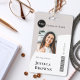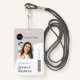 Einfaches, stilvolles Corporate ID-Abzeichen, das mit dem ID-Foto, dem Namen, der Position und dem Strichcode Ihres Mitarbeiters leicht personalisiert werden kann. Das stilvolle Design besticht durch eine moderne, minimalistische Gestaltung und ein Blockbanner in Stein grau, das sich von der Masse abhebt.
