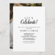 Dieses schlichte minimalistische Foto, lassen wir feiern Party Einladung ist perfekt für eine elegante Verlobung, Bachelorette, Ruhestand oder jedes Event oder Party. Das klassische Design mit rustikaler Schwarz-Weiß-Typografie mit einem modernen minimalen Look und Ihrem Bild auf der Rückseite. QSD113