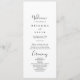 Dieses einfache, minimalistische Hochzeitsprogramm ist perfekt für eine moderne Hochzeit. Das einfache und elegante Design zeichnet sich durch klassische und extravagante Schriftzeichen in Schwarz und Weiß aus.