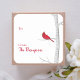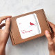 Dieses Design zeichnet sich durch ein schlichtes, minimalistisches, winterrotes Aufkleber-Label aus, mit einer botanischen Weihnachtsszene in Aquarellen, trendigen Zweigen, botanischer Aquarellfarbe, Vintag-minimalistisch-roter Vogel, stylische Kalligraphie-Schrift, schneebedeckter Kiefernbaum, Birkenwald weiß, kreative stilvolle Designetiker Labels, Naturvogel mit einfachem Eleganz.