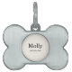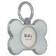 Dieses weiche Elfenbeinhundehalsband trägt ein warmes, elegantes Zentrum, das von einer gebürsteten Metallknochenform umrahmt wird. Die saubere schwarze Typografie hält den Namen und die Kontaktnummer des Haustieres leicht lesbar, während der subtile Cremeton einen Hauch von Raffinesse in das alltägliche Aussehen Ihres Hundes bringt.